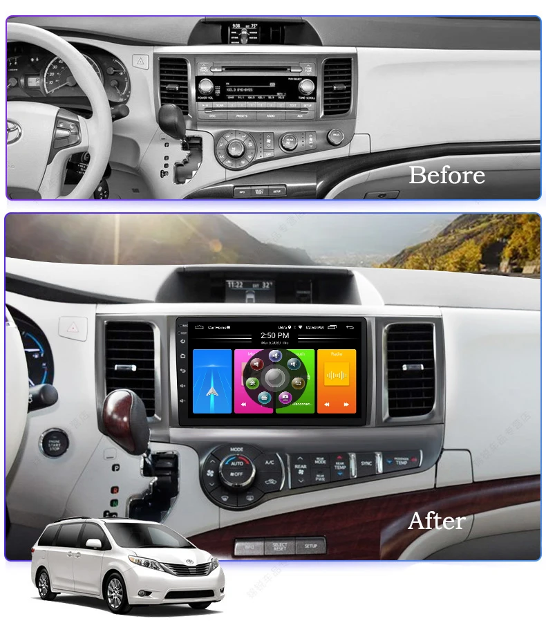Toyota Sienna 2011 2014 Oem Fit 8 Hd Touch Screen Android Dvd Navigation System Gps Bt Wifi A2dp Camera Autotecpro Navigation Systems