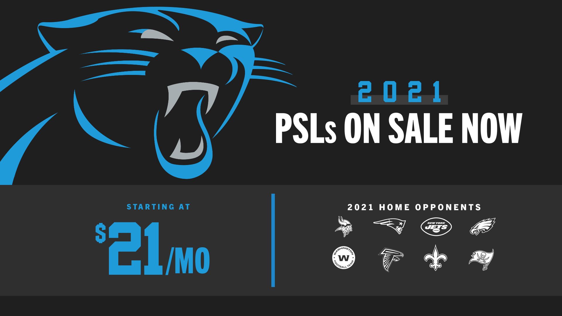 Interest-free payment plans for one-time PSL cost annual season ticket cost Ability to post single-game tickets for resale through Panthers Mobile App Ability to transfer or donate single-game. 2012 figures to be the start of something special in Panthers Nation. The NFL currently expects and is planning for a full 2020 NFL season.