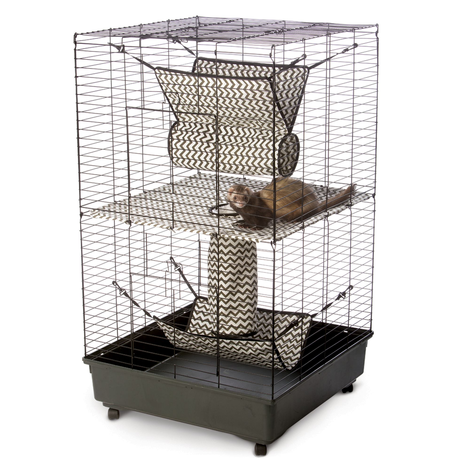Small ferret cage. But why is this cage the best. This budget cage features three platforms for your ferret to rest on and features a raised wire grat fool that lets food particles and other contaminates pass through to the plastic pan below. Get a small cage that still provides.