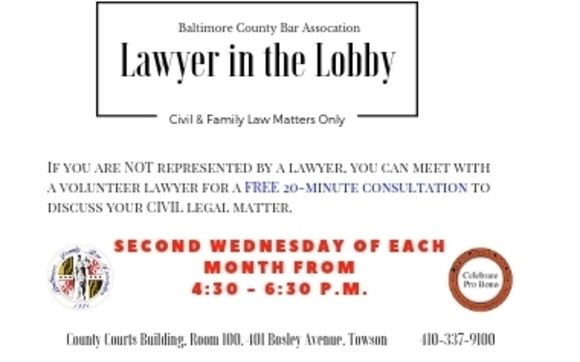 LRIS maintains a panel of attorneys with experience in specific areas of the law listed below. Lawyer In The Lobby The Baltimore County Bar Association provides an opportunity for you to meet with a volunteer attorney for a brief consultation on the second Wednesday of each month 430-630 pm. There are three main categories that these services fall into public lawyer referral services private lawyer referral services and online lawyer referral services.