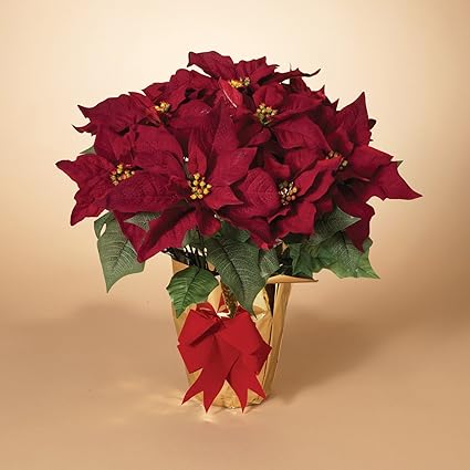 20 Inch Potted Burgundy Red Poinsettia Plant Artificial Christmas Poinsettia Plant In Gold Foil Wrap Amazon Co Uk Kitchen Home